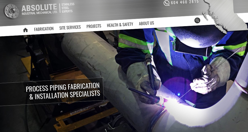 We designed and programmed a website for Absolute Industrial Mechanical Ltd., based in Maple Ridge. The stainless steel specialists at Absolute Mechanical Industrial Ltd. have provided professional pipefitting and industrial plumbing services across British Columbia since 1999.
