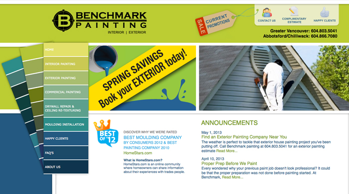 Voted “Best Painting Company” by consumers at www.homestars.com, Benchmark Painting’s recently launched website gives the residential and commercial painting company a chance to show all its potential clients how it has earned this reputation. The site lists all of Benchmark’s painting services, recent jobs and client testimonials in order to build consumer confidence. Visit our portfolio to view our work