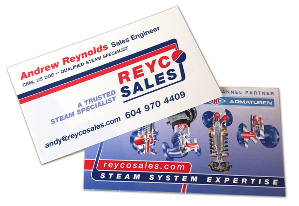 Reyco Sales offers consulting services and specializes in steam products. For them, we put together a logo, business cards, and will present their website soon.