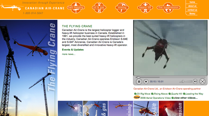 Needing more from its website, Canadian Air Crane Ltd. contracted Honeycomb Creative to redesign its site and increase its functionality through the addition of a content management system, email list management and photo library.
