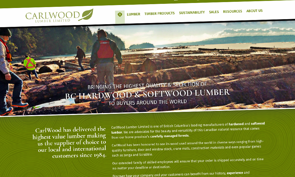 Hard work and creativity bring to life Carlwood’s new sales-oriented lumber website with a fresh layout that combines natural elements, shades of green and collaged photos. It features responsive design programming to ensure it is easy for customers and employees to navigate, whether they are browsing from a smartphone, tablet or desktop computer.