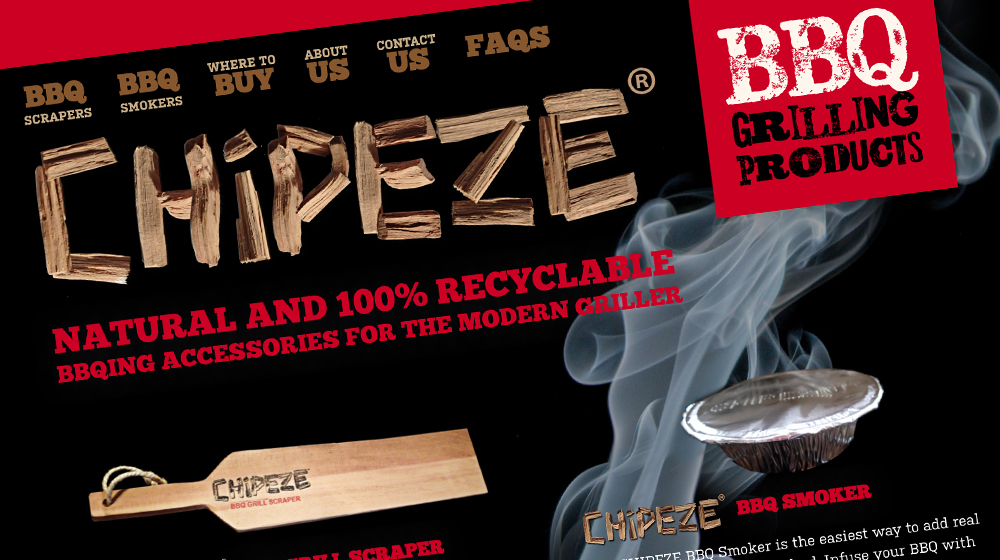 The new CHIPEZE® Grilling Products website is live just in time for grilling season and Father’s Day. CHIPEZE® Smokers and Grill Scrapers are manufactured locally in Maple Ridge from natural, locally-sourced wood. This small site features fun Old-West style typography and block-print style images. The black, red and butcher paper brown colours reflect the grilling theme. Pick yourself up a scrapper from a local retailer.