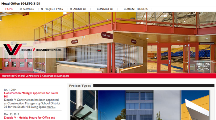 With the launch of www.doublevconstruction.com, Double V has a website to showcase its every-growing list of successfully completed projects. Best of all, the website includes Sitemanager, Honeycomb Creative’s backend content management system, so Double V can easily update and maintain all editable website content and upload project photos as needed. Visit our portfolio to view our work