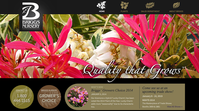 We launched a new website for Briggs Nursery, an international leader in micro-propagation. Briggs Nursery propagates and grows a wide variety of specialty plants each year from its micropropagation laboratory and greenhouse in Elma, Washington. The new website features some of the over 1,000 specialty plants Briggs produces and provides quick access to current plant availability lists, wholesale contact information and shipping terms and conditions. Visit Briggs Nursery to see the new plants available at for 2014.