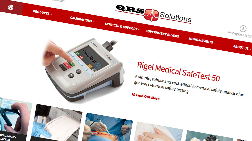 A responsive website for QRS Solutions, a medical equipment re-seller and calibrations company from California was launched today. In the past, their clients were mostly aware of the calibration services they offered and were not aware of their product offerings. The new website focuses on the equipment products from their primary vendors and their ability to provide customers with the best solutions for their needs.
