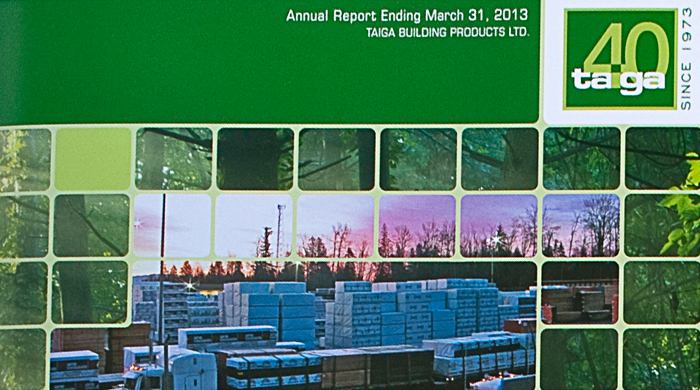 “Looking forward to the next 40 years” is the title for Taiga Building Products Ltd.’s 2013 Annual report, and aptly so. This year marks the 40th anniversary for the independent wholesale building products distributor and the seventh annual report Honeycomb Creative has designed and sent off to print for the Canadian-based company.