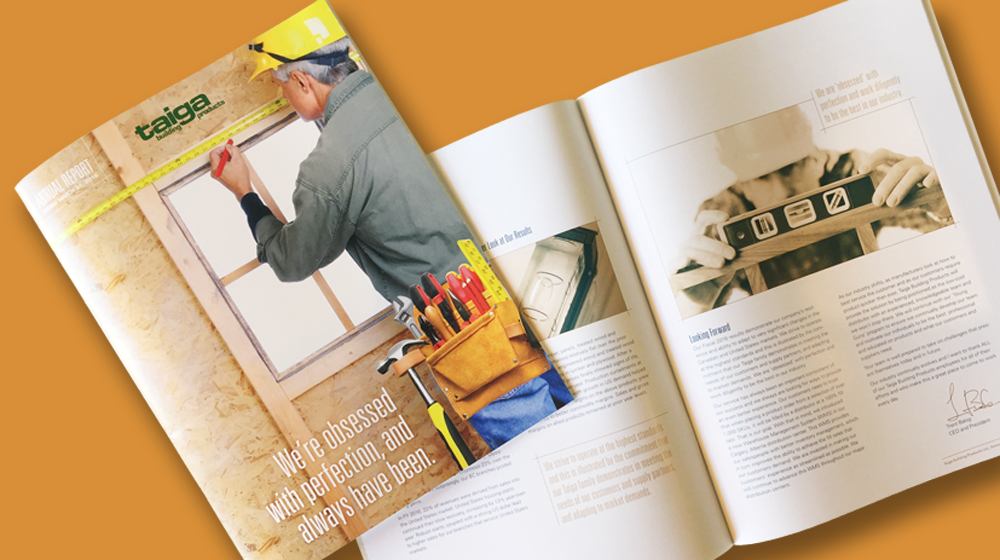 Honeycomb Creative has finished design work on the 2016 Annual Report for Taiga Building Products Ltd., a building product distributor based in Burnaby, BC.