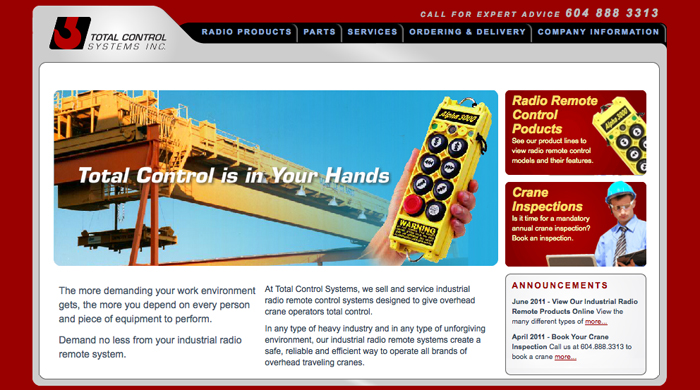 With its new website – complete with a backend content management system – Total Control can easily update photos and descriptions for its line of industrial radio remote systems every time a new product is launched. Visit our portfolio to view our work